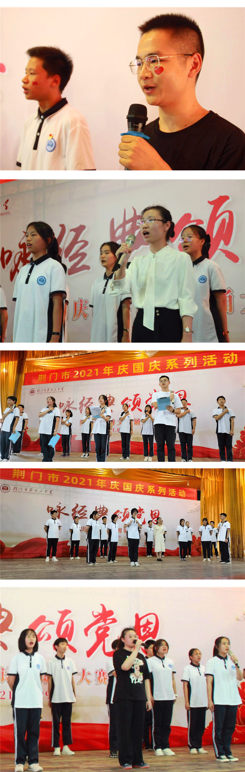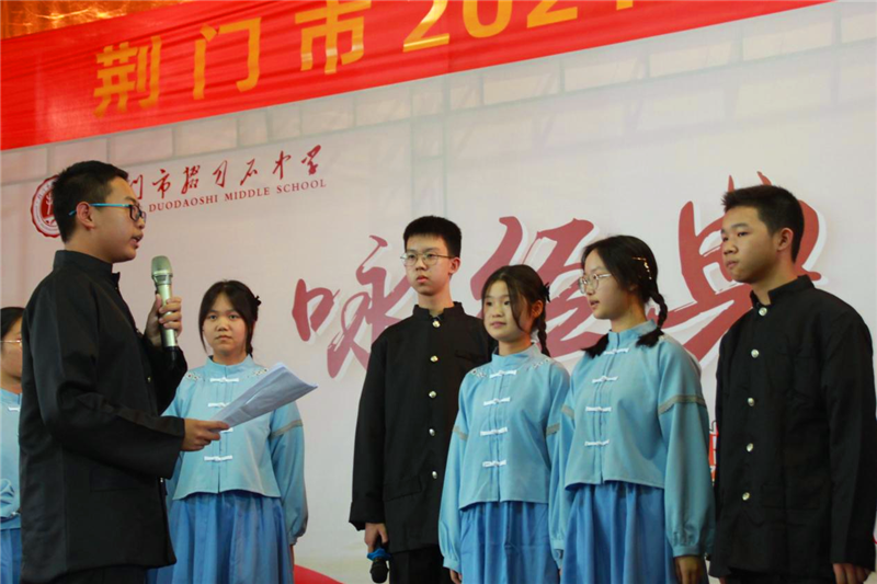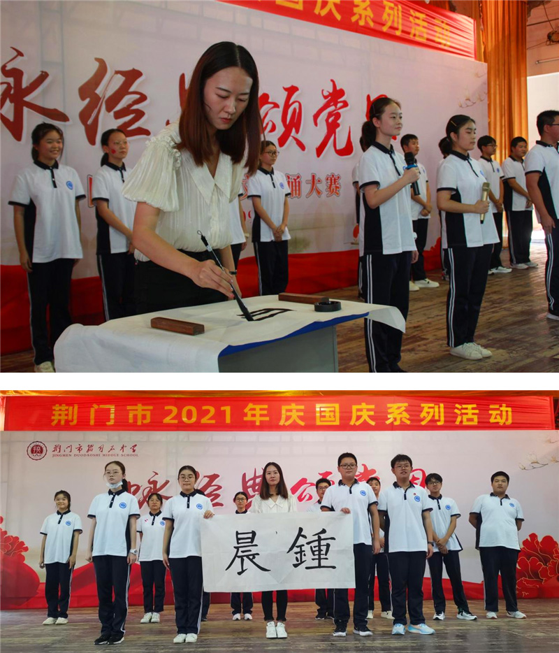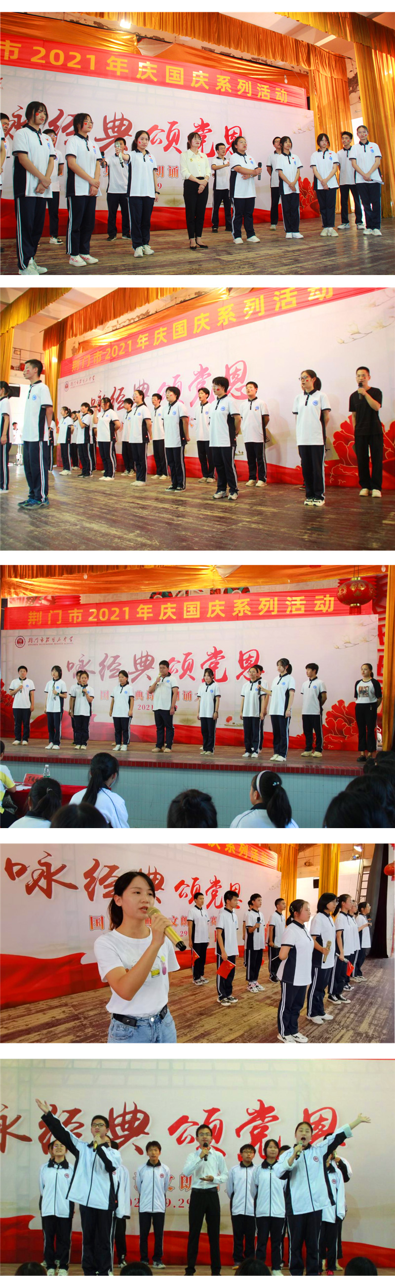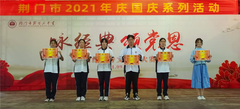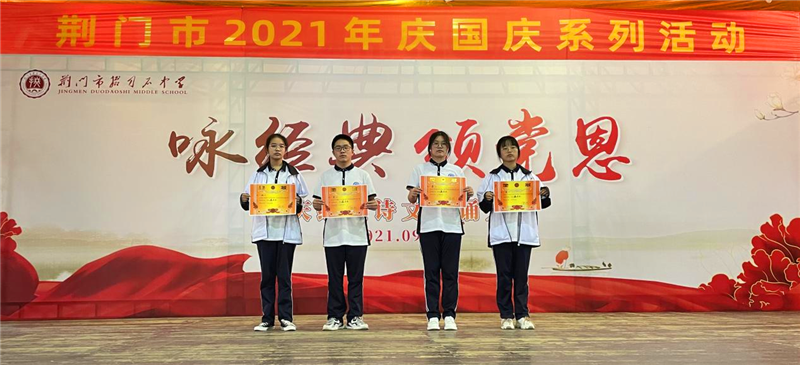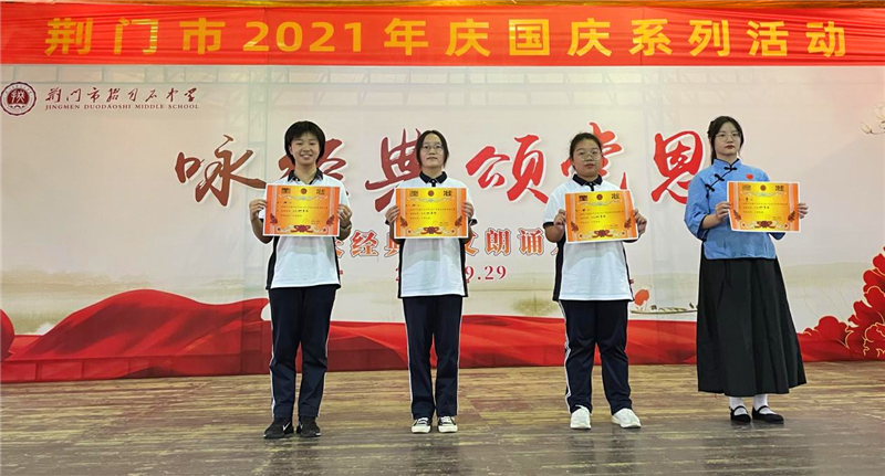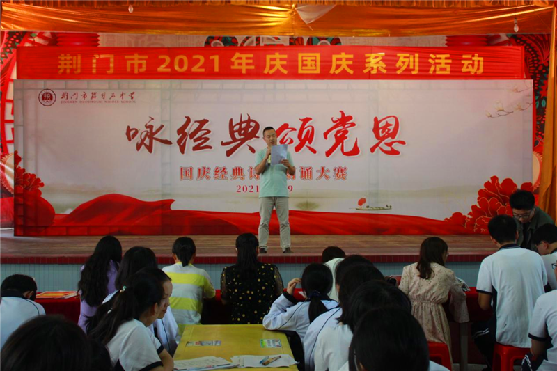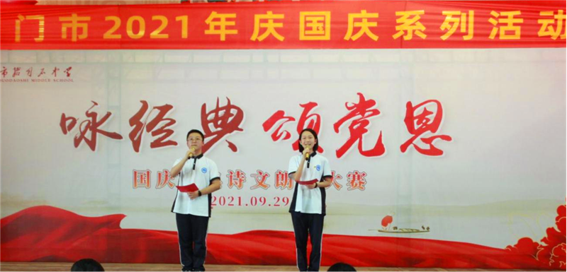 为传承和弘扬中华民族优秀传统文化,歌颂建党百年光辉历程,庆祝中华人民共和国诞辰七十二周年,增强师生爱校爱党爱国情怀,9月29日下午,市掇刀石中学团委联合教科处、高一年级组举办了"咏经典,颂党恩"经典诗文朗诵大赛。