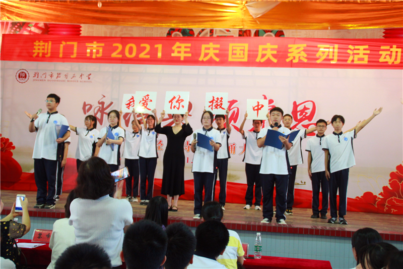 高一(13)班的原创作品《我爱你,掇刀石中学》,抒发了同学们对学校的热爱,寄托了老师对同学们的厚望,展现了掇中师生的爱校情怀,获得评委和观众的一致好评。