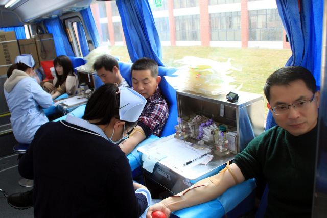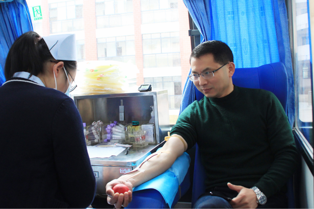 12月11日上午8:30,市中心血站采血车进入我校,教职工们踊跃奉献爱心,将讲台上的无私与热情融入热血,汇入血袋,传递到有需要的人身上。
