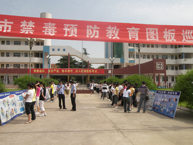 荆门市禁毒预防教育图板巡回展在我校展出(图)
