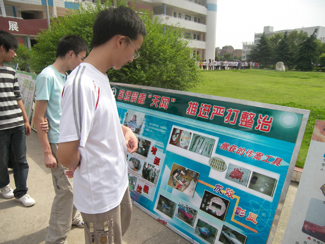 负责展板的公安人员还介绍说,希望通过这样的展览让学生在受教育的同时,还向他们的家人宣传,把禁毒意识向社会传播,使全员参与禁毒,构建和谐社会、稳定社会。