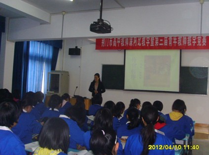 4月10至11日,荆门市“课内比教学”综合实践学科优质课竞赛在龙泉中学举行,我校肖春玲老师主讲的《怎样制定活动方案——高中研究性学习》一课,得到评委们的一致认可,在十几位选手中脱颖而出,获得一等奖。