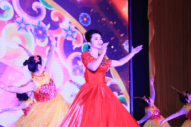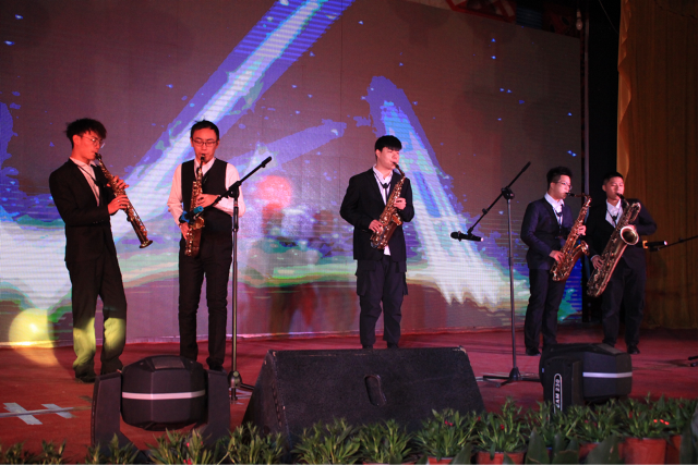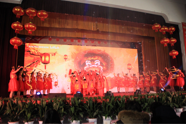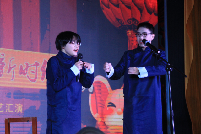 七点,在一支《春节序曲》的舞蹈中,晚会火热开场,喜庆的中国红瞬间点燃全场的热情,晚会节目异彩纷呈,民族舞蹈《又见江南雨》《沂蒙山小调》《赤伶》等风姿绰约,柔美飘逸;小品相声《青春健康会所》《排队》幽默诙谐,妙趣横生;古筝合奏《云水禅心》《东海渔歌》婉转动人,余音袅袅……此外,还有歌曲串烧、乐队演唱、诗歌朗诵等节目,引起了台下一波又一波的欢呼与喝彩。在一段《幸福中国一起走》的舞蹈中,晚会落幕,呼应了“同舟共济复兴路,砥砺奋进新时代”的主题。
