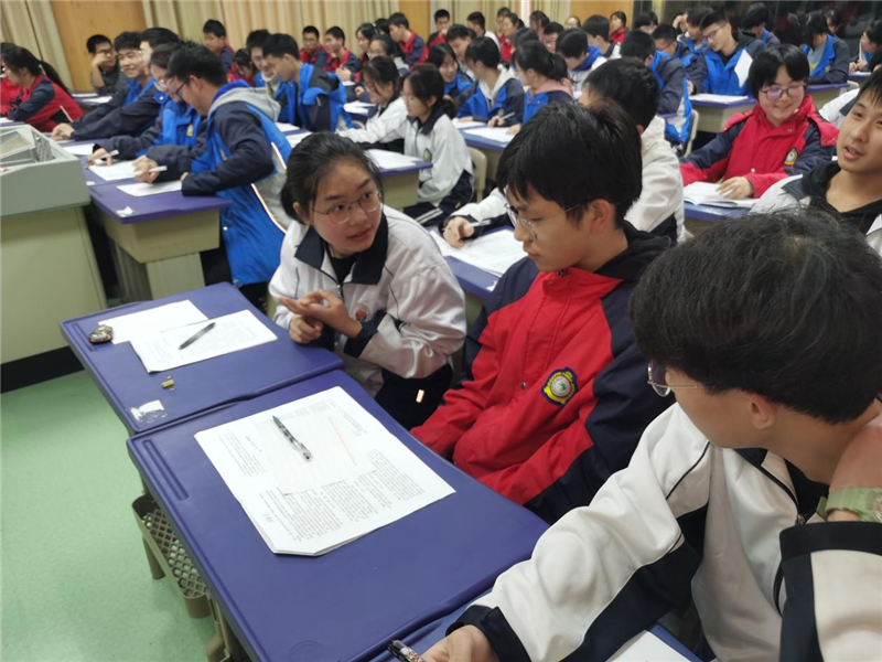 孙雨嵩老师首先展示了两幅图片:1901年清政府卑躬屈膝签订《辛丑条约》和2021年杨洁篪主任义正词严斥责美方虚伪嘴脸,他提问:“为什么说中国共产党的领导是历史的选择、人民的选择?”“为什么要实行改革开放?”“中国特色社会主义的成功验证了什么?”针对孙老师提出的问题,同学们分组讨论,积极发言。大家重回重要历史节点,从历史中汲取经验教训。