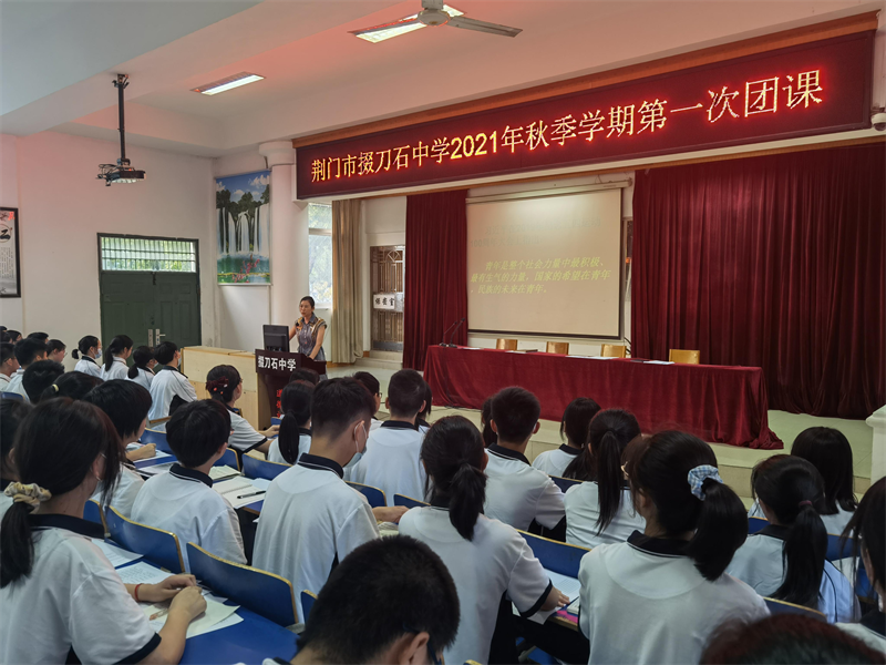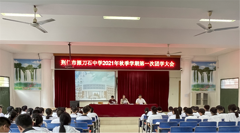 9月15日下午课外活动,市掇刀石中学秋季学期第一次团学大会在学术报告厅召开,70余名学生干部参加会议,会议由校团委副书记孙雨嵩主持。