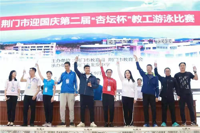 9月19日,荆门市教育局、荆门市教育工会主办的荆门市迎国庆第二届“杏坛杯”教工游泳比赛在龙泉中学举行,我校刘成兵、全红英等18位教职工参加了比赛。