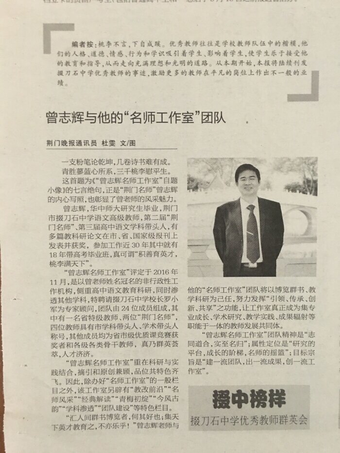 《荆门晚报》“掇刀石中学优秀教师群英会——掇中榜样一曾志辉