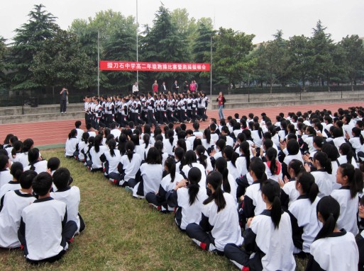 为磨练学生意志,提高“跑操”品质,提升队伍士气,10月12日下午,高二年级组组织各班进行了“跑操”比赛。副校长毛会平,高二年级书记吴桥梁、主任黄红兵,党务办主任张铮等领导出席了这次大会。虽然天色微雨,但高二年级14个班级排着整齐的队伍,喊着响亮的口号,斗志昂扬地跑过主席台。“自强不息,永不言败”“挑战自我,赢得未来”等令人热血沸腾的班级口号更是喊出了青春的誓言,喊出了前进的决心,喊出了班级的威风。在此次比赛中,高二(2)班、高二(1)班、高二(12)班分别获得了一、二、三名。这次活动,整顿了跑操纪律,跑出了同学们的精气神,真正做到了“方阵不散团,慢跑不能停,队紧不能松,令清不模糊”。
