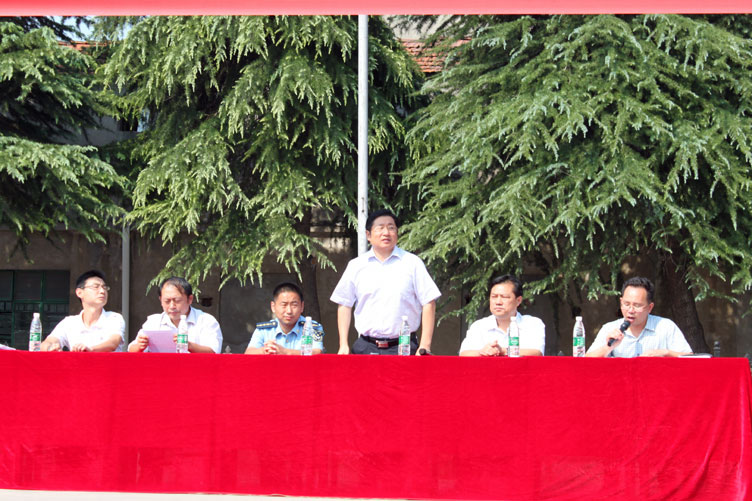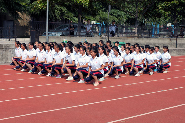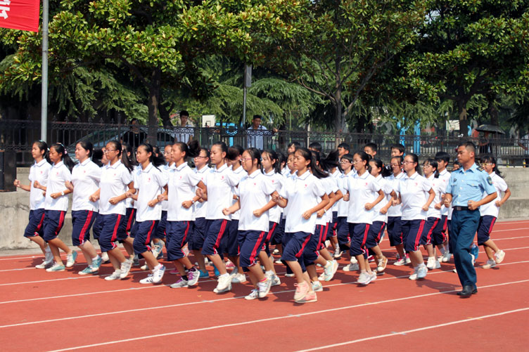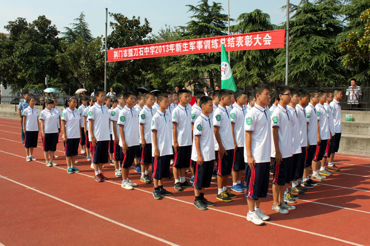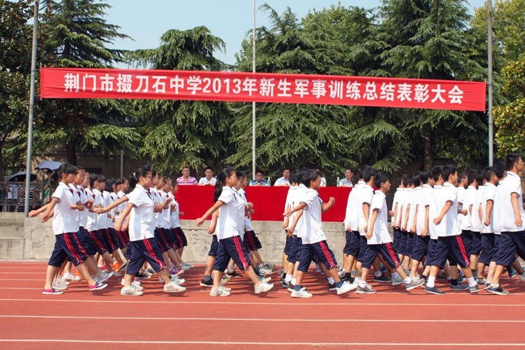9月1日上午,2013级新生军训总结表彰大会在学校操场举行。850多名新生以军训会操的形式,圆满结束了为期7天的高一新生军训活动,展示了2013级新生的昂扬意气。校长杨清,副校长李锡平,政教处主任吴桥梁、副主任毕卫华,高一年级主任鲁勇参加了这次大会。