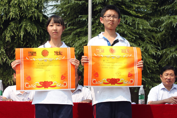 在这次军训中,涌现出一大批优秀的团队和个人。高一(1)班等5个班级获会操表演优胜奖,高一(11)班获组织奖,高一(3)班获精神文明奖。男生1号公寓301等25个寝室获内务整理“优秀寝室”称号,谢昊等70名同学获得“优秀学员”称号。
