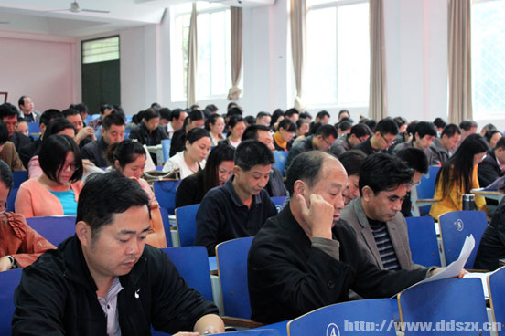会上,常昌成老师代表高三物理备课组作经验介绍,并进行了成果展示。常老师以一年来该组在全市各类考试中取得的优异成绩证明了“三备”“三练”取得的实实在在的效果。刘丰老师代表外出学习教师介绍了河北衡水中学先进的教学理念和具体做法。教务处谭德发主任对我校新近开通的金太阳教学网的操作方法进行了说明。毛惠平副校长对学科网资源的高效使用进行了指导,并要求全体教学人员站在学校发展的高度,将“一课三备”“一课三练”扎扎实实开展,促进我校教学成绩再上新台阶。