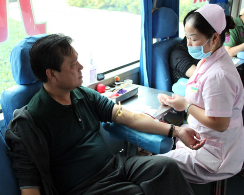 10月17日上午,荆门市中心血站的流动采血车开进校园,广大教职工踊跃报名,积极参与无偿献血,向社会奉献自己一片爱心。这次活动得到积极响应,来献血的教职工络绎不绝。他们有说有笑,现场气氛愉悦温馨。在工作人员的组织下,教工们有序地领取了登记表,进行血型测定、体检、抽血。此次献血活动,我校共有29人献出了9000多CC爱心血。老师们积极参与无偿献血活动,不仅体现了人民教师乐于奉献的精神风貌,更体现出大家对社会的无限关爱。