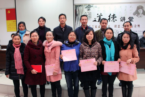 会上,副校长李锡平宣读了在2013-2014年学年度里受到各级表彰的先进教师名单。李凤琴、刘丰等26名教师获得市教育局表彰,匡红梅等13名教师受到区教育局的表彰,谢永清等23名教师受到学校表彰。