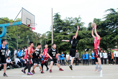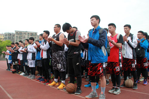 4月11日下午,我校学生男子篮球赛隆重开幕了。本届学生男子篮球赛由政教处主办,高二年级组和体育教研组承办,共有14个学生代表队参赛,将持续两周。开幕式由高二年级组政教主任杨宜勇主持。
