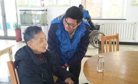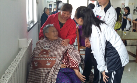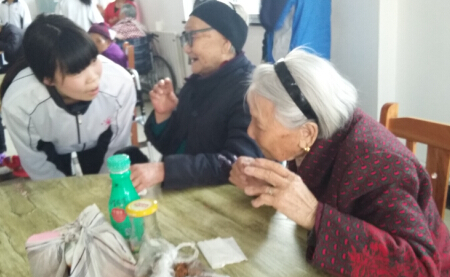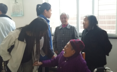 同学们的到来受到了白石坡社区养老院熊院长和老人们的热烈欢迎。高一(6)班、高二 (13)班等班级青年团员积极奉献自己的爱心,为老人们带去了牛奶、水果、象棋、收音机等各种食品、用品。他们为老人们唱歌,陪老人们聊天,向老人们汇报学习和生活情况,为身体不舒服的老人捶背按摩,给老人们带去了欢乐和温暖。临走时,团员代表依依不舍地同老人们道别。