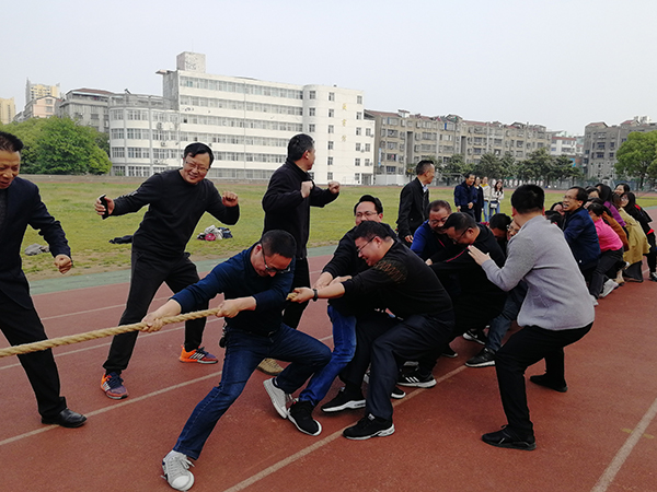 为了丰富我校教职工业余生活,展示学校新气象、新风貌,迎接五一劳动节,4月29日,我校教职工拔河比赛在运动场热烈举行。