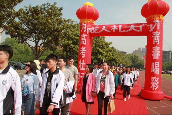 仪式在高昂的国歌声中开始。原党委委员、副校长,现高三年级蹲点领导李锡平致辞,他希望同学们勇敢地承担起成人的责任与使命,用实干拥抱伟大梦想,用奋斗书写最美华章!同学们向家长恭行“拜谢礼”,向“未来信箱”投下给未来自己的一封信,面对蓝天白云庄严宣誓,步入“成人门”,踏上“成才路”。最后,家长向同学们赠送成人礼物,为孩子扎上吉祥的红丝带,并送上最真诚的祝福。
