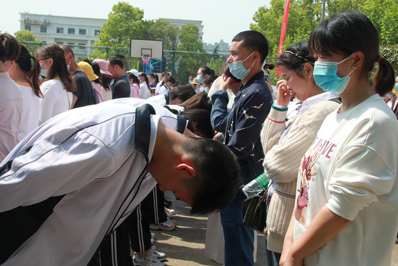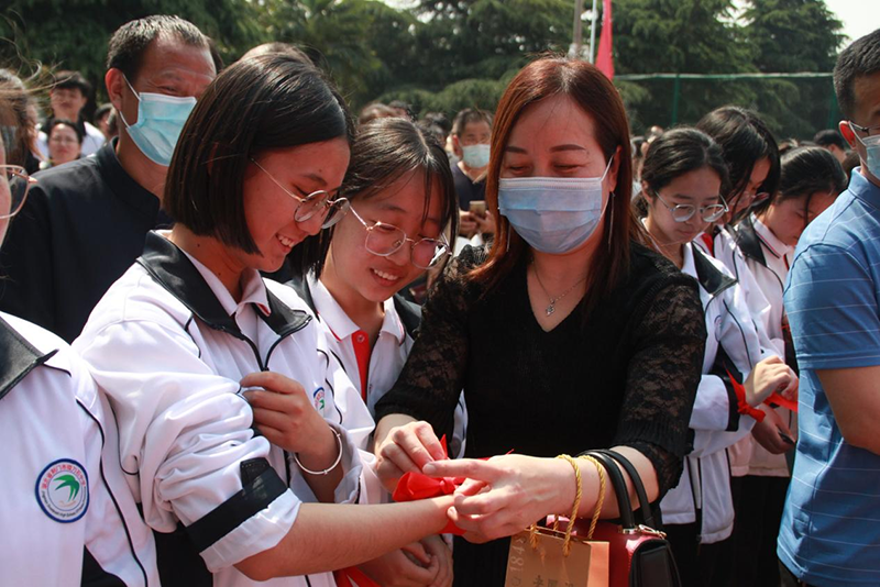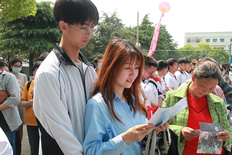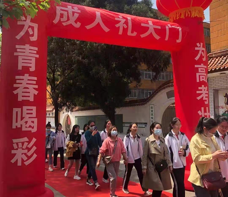 活动的最后,在《神圣时刻》的音乐声中,高三学子与家长牵手踏上红毯,在老师们的祝福声中,昂首迈过“成人门”,走向成功门,铭记这一庄严时刻。