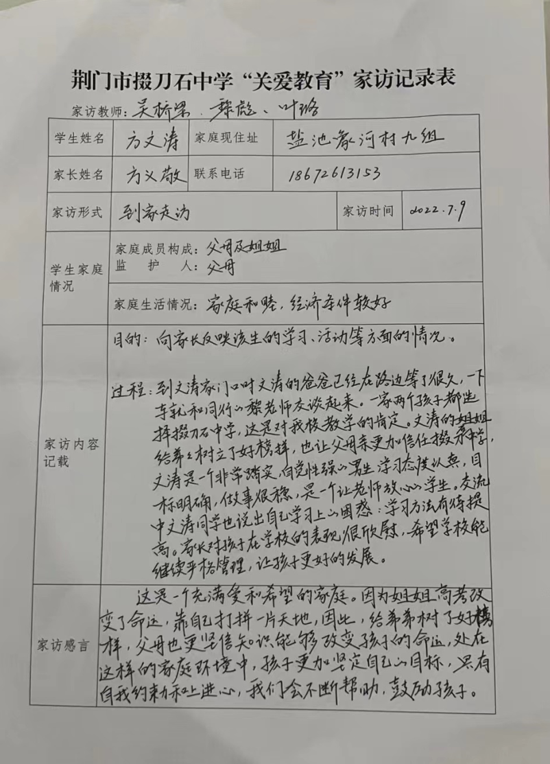 以下为班主任家访手记。