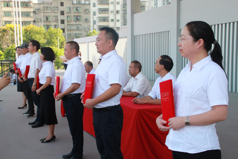 党委委员、副校长吴桥梁主持大会。他首先代表学校对新同学、新教师的到来表达了最诚挚、最热烈的欢迎。在激情回顾了过去一学年全体师生共同努力取得的辉煌成绩后,迎着朝阳,他宣布:“荆门市掇刀石中学2022年秋季学期开学典礼暨庆祝第38个教师节表彰大会现在开始!”