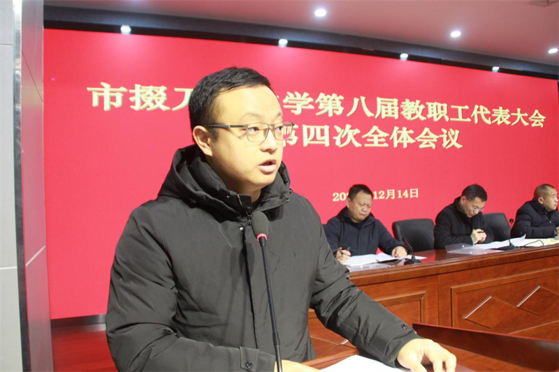 12月14日,市掇刀石中学在学术报告厅召开第八届教职工代表大会第四次全体会议。会议表决通过了《市掇刀石中学教学质量评估方案》《市掇刀石中学教学事故分级认定及处理办法》和《市掇刀石中学岗位晋升评分标准》。