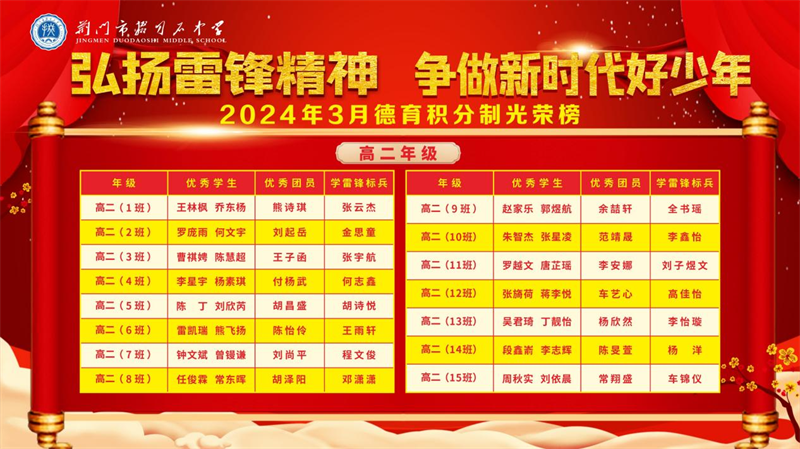 根据学生德育积分情况,团委评出若干“学雷锋·好少年”,树立榜样,表彰模范。