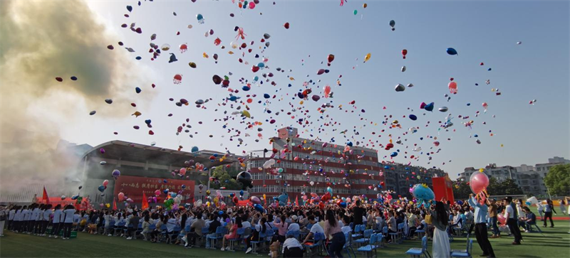 伴随着激昂的国歌旋律,五星红旗冉冉升起,高高飘扬。师生肃立,瞻仰国旗目光坚毅;家长动容,目视远方心绪激荡。十八响礼炮隆隆作响,倒计时计数声声铿锵,“成人”的欢呼响彻全场,飞翔的气球青春张扬——成人仪式在高昂的氛围中隆重拉开大幕。