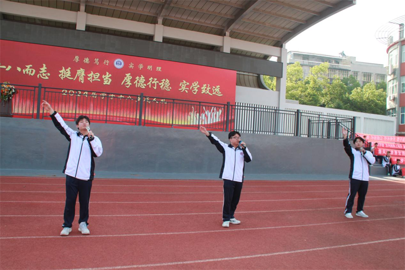 高三(9)班蔡洪宇同学代表全体高三学子慷慨发言:站在成人的门槛上,我们应以“感恩”、“梦想”、“拼搏”面对未来!青衿志高,心怀感恩,要常记生恩,永忆师情;少年傲气,拥抱梦想,要素履以往,书写华章;前路漫长,力行拼搏,要永不言弃,迎难而上!