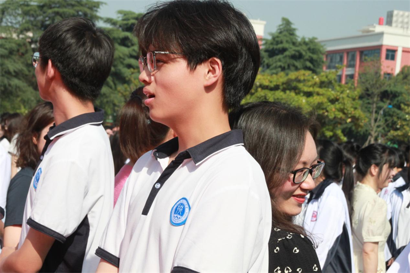 雏凤清鸣,声震千里;青衿立志,气贯长虹。一曲《灿烂》唱尽在场学子的心声:“我们跨过万水越过千山,以梦为马清风为伴,脚步比远方还要远,一路不停勇往直前。我们不惧千难不怕万险,把所有风景都看遍,不负时光不负流年,生命比烟花还灿烂……”