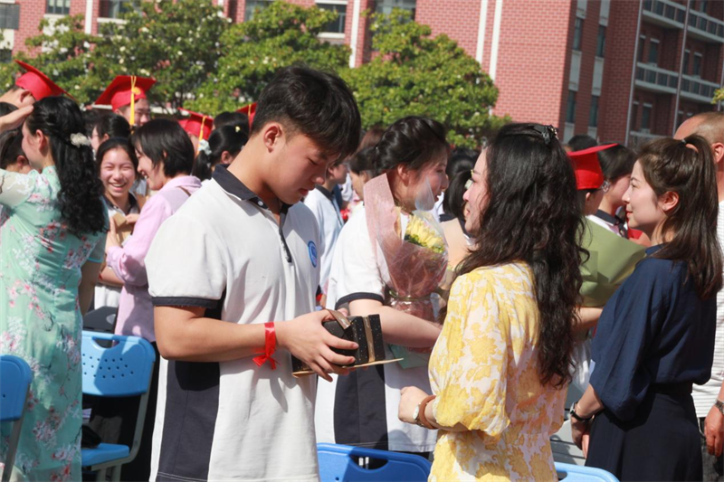 手捧成人蛋糕,腕系祝福丝带,背靠背,心连心,聆听父母殷切的叮嘱,收下精心准备的礼物……成人的幸福在这一刻如此具体,父母的爱意也在这一瞬展露无遗。高三(8)班陈奕朗同学家长作为代表,激情鼓励孩子们:用感恩之心回馈爱,生活会充满阳光;用持之以恒蓄力跑,成功会不期而遇;用信心、平常心迎战高考,定能超越极限,赢得胜利!她代表所有家长为高三学子送上祝福:愿孩子们落笔生花,合笔如愿,拥有一个热辣滚烫的人生!
