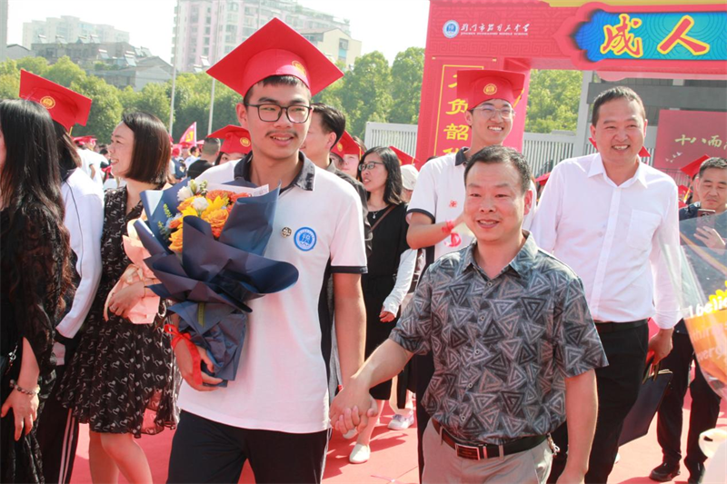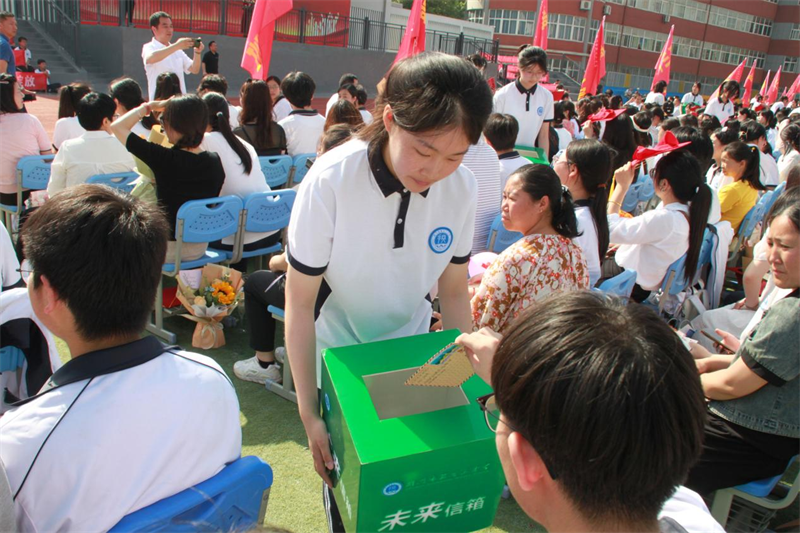 在对未来的美好展望中,学子们投递出写给四年后自己的信件,紧握着父母的手迈过“成人门”,挥别青涩,走向成熟;穿过“奋斗门”,抛却迷惘,奔向成功。成人红毯的尽头,有师友的迎接,大家一起合影留念,定格时光,记录莞尔韶华,永存师生情谊。