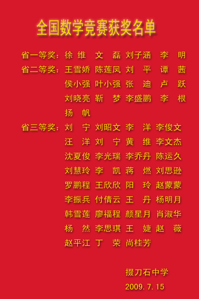 全国数学竞赛我校获奖名单