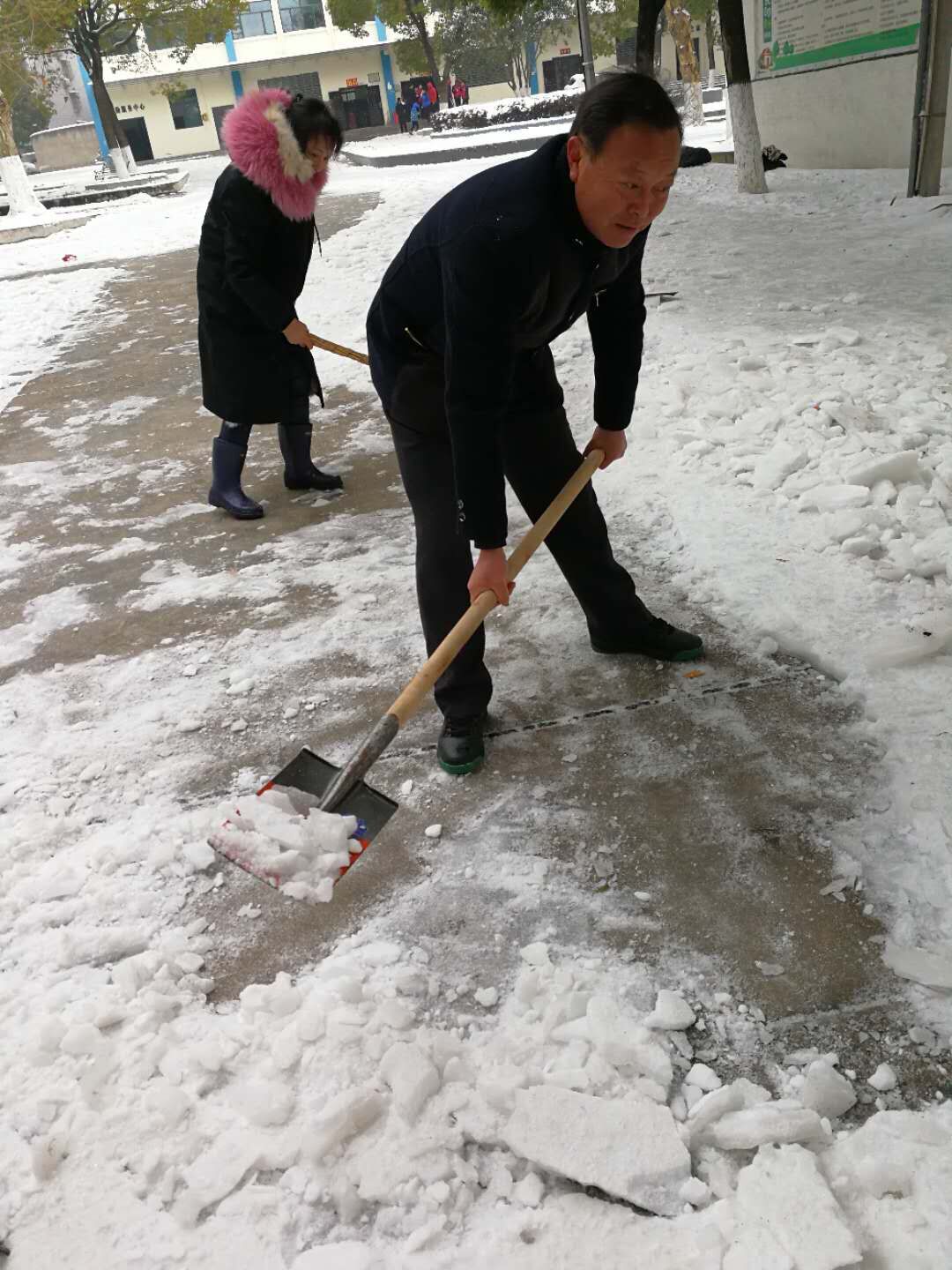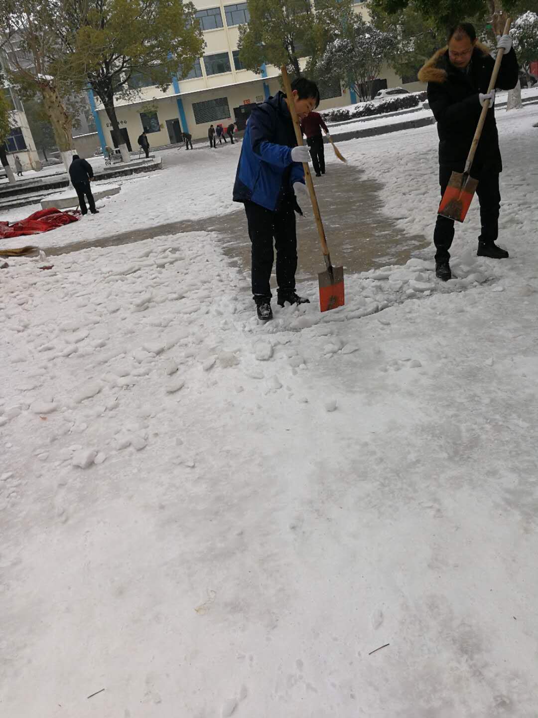 1月3日中午,2018年首场降雪翩然而至,美丽的掇中校园也披上了洁白的外衣。银装素裹的美景给大家带来欣喜的同时,也给校园安全出行带来隐患。掇刀石中学的老师们积极行动起来,开展全校扫雪行动。