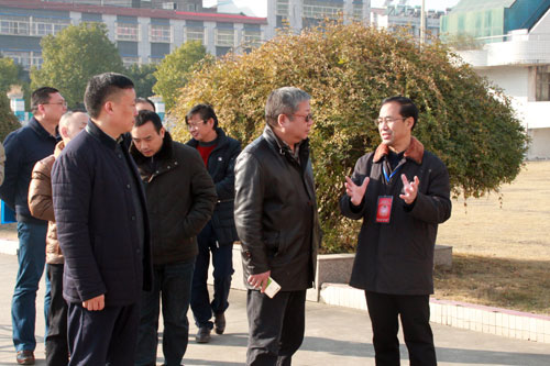 雷春副馆长一行在校长罗小军的带领下参观了我校的校园环境,查看了教室多媒体设备、录播室等信息化硬件设施落实情况。我校教科处主任刘丰、副主任陈万、电教中心主任董旭明全程陪同。