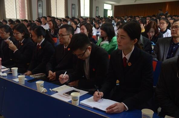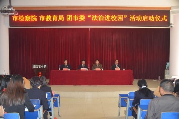 11月7日上午10点,荆门市检察院联合市教育局、团市委在我校隆重举行全市“法治进校园”活动启动仪式,拉开了“法治进校园”巡讲活动的序幕。仪式由市大中专办专职副主任官军主持。出席启动仪式的有市检察院、市教育局、团市委相关负责同志。
