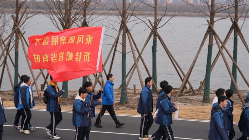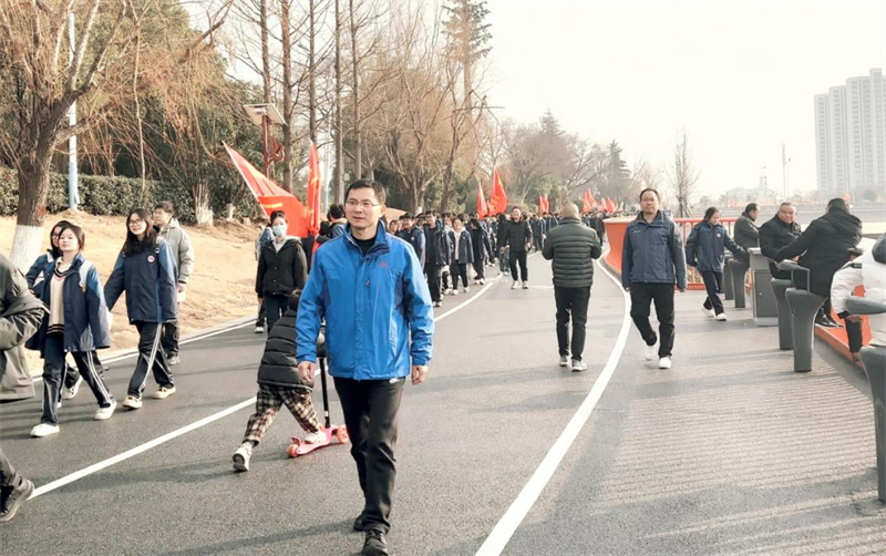 以青春步履书写教育新气象——荆门市掇刀石中学开展首届“迎新春,正青春”环凤凰湖健步走活动