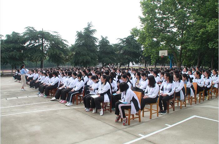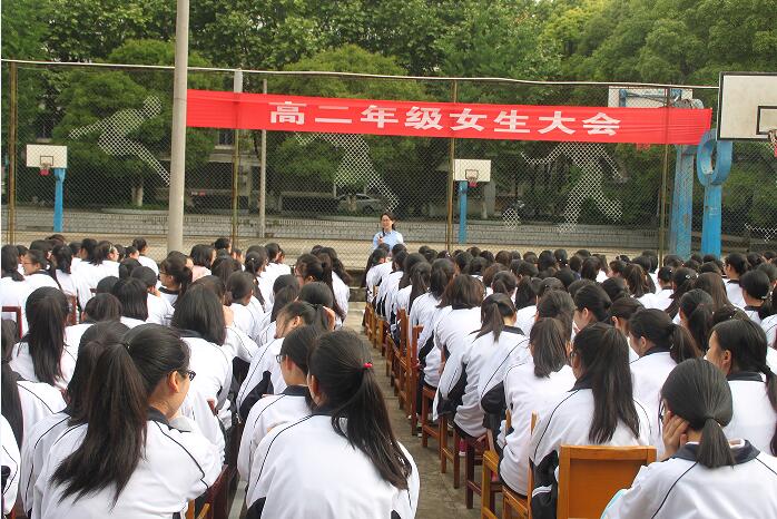 5月12日上午,掇刀石中学高二年级在篮球场上组织召开女生教育大会。会议由高二年级女生政教员周晗老师主持,学校政教处副主任代翠平和学校心理咨询室负责人田静老师主讲。