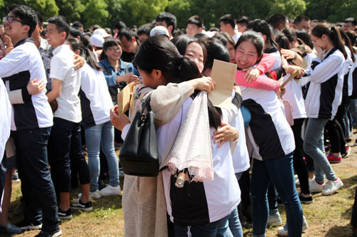 在“感恩互动”环节里,孩子对着父母鞠躬谢恩,在场的人几乎全场潸然泪下。父母亲手交给孩子自己的亲笔信,读完信后,孩子们都情不自禁地拥抱了自己的爸爸妈妈。