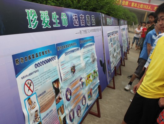 6月26日是国际禁毒日,为了普及毒品预防知识,进一步加强学生对毒品危害的认识,增强学生的自我保护意识,为学生营造良好的成长环境,我校于2012年6月26日至27日开展“珍爱生命,远离毒品”的校园禁毒宣传教育活动。