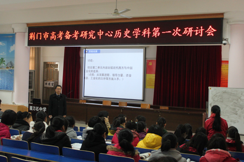 2012年12月21日上午,荆门市高考备考研究中心历史学科第一次研讨会在我校召开。市备考研究中心历史学科组组长、市教研室历史教研员李定荣老师主持会议。市备考研究中心历史学科组20余名教师及我校高一、高二年级全体历史教师参加了本次研讨会。