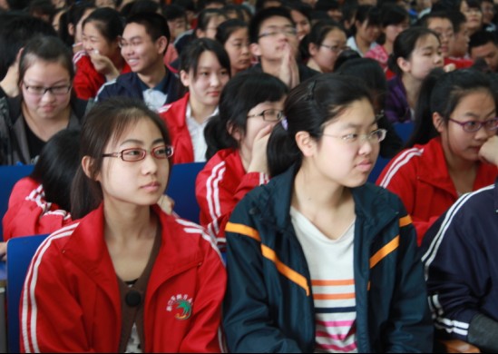文勇老师从高中语文各板块的学习入手,告诉同学们如何把握考试特点,如何使用正确的学习方法,如何认识语文作为文化承载体它本来应有的纯真价值。文勇老师思维活跃,观点新颖,语言幽默。他说,中学语文课本中的古诗文阅读,是要求学生具备一定的知识和能力。古人的文字简约、形象、幽默、典雅、富丽。高中学生要学好它们,需要将200篇左右的优秀典范的文章烂熟于胸。他把考试作文生动地比作是送给陌生人的一个灿烂的微笑,它需要深刻的见解、大量新鲜丰富的阅读、准确有力的语言来支撑。他认为,学会从叙事抒情到理性思考是一个上升性的进步,一个民族要成长,离不开深刻、哲理性的思索。短短一个多小时的讲座,文勇老师不仅清晰地分析了高考的特点与动向,与同学们密切互动,为同学答疑解惑,还热切地鼓励同学们“优秀是一种习惯,成功是一种姿态”。讲座结束后,同学们围着文勇老师久久不愿散场,他们纷纷表示,文勇老师的讲座使人如沐春风,对学习、考试、提升自我修养都大有益处。