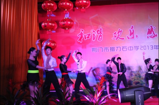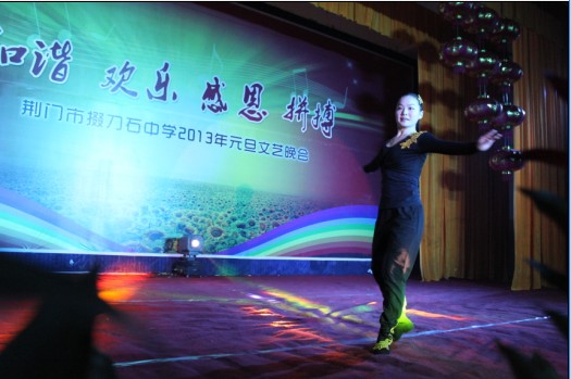 在晚会上,23个节目各展风姿,奉献给全校师生一场视听大餐。热情洋溢的舞蹈《和谐圆舞曲》大气喜庆,为晚会定下了详和的基调。舞蹈《雨中的歌》《欢沁》《欢乐颂》曼妙灵动;《江南制造者》紧贴时尚风潮,这掇刀石中学版的江南stlye引得现场欢声雷动;颇具现代风味的《悦》《I did it for love 》《Womanizer》《Goodbye Baby》热辣劲爆,舒放青春少年们如火的热情;独唱《军营飞来一只百灵》轻快高昂,为同学们带回军训的记忆;小品《新闻联播》《职场对对碰》极尽捧逗之能事,惹得现场观众不时捧腹大笑;湖北大学的二胡独奏《赛马》、傣族舞《喜水》饱醮湖大对我校的关心和支持,成为晚会上最大的亮点。