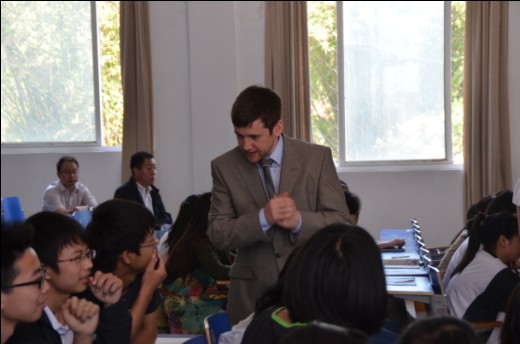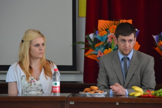 5月12日上午,英国剑桥OSE昂来英语学校校长Danny Colic率专家团对我校进行实地考察,并和我校师生进行交流。专家团对我校的校园环境、文化氛围、学生的求知欲都给予了高度评价。我校出席本次交流活动的师生有校长杨清、副校长毛惠平、教务主任谭德发,还有英语教研组的全体教师和高一年级部分学生。在交流中,专家团向我校师生介绍了昂来英语国际交流的项目和交流形式。