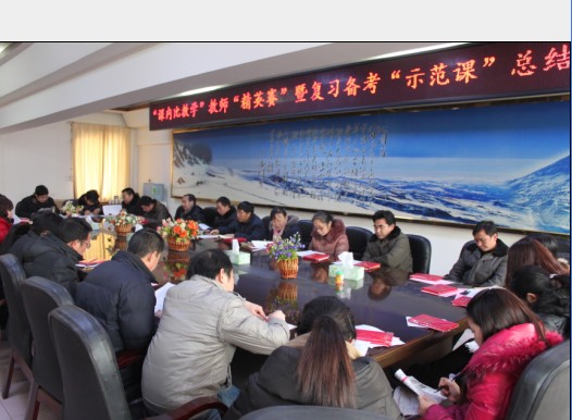 2013年1月17日下午第三节课,教科处与教务处共同召集参与“课内比教学”教师“精英赛”暨复习备考“示范课”活动授课的高一、高二年级23名教师,在二楼会议室召开了总结会。