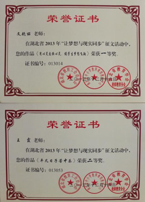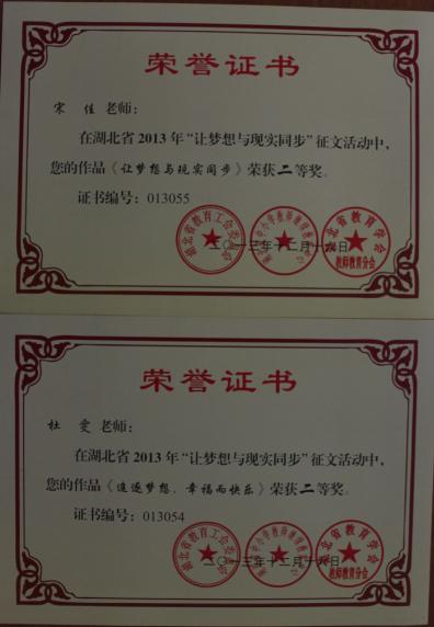 日前,从掇刀区教育局获悉,我校遴选报送的17篇文章12月7日在省级“让梦想与现实同步”征文活动中获奖。 近年来,掇中以“抓习惯,提士气,出成绩”为工作重心,重点打造高效课堂,以期在现有成绩的基础上实现再次飞跃。全体教师与时俱进,在教育教学过程中全力耕耘,数年如一日,抒写一个个梦想。此次征文活动中,掇中教师或回眸走过的峥嵘岁月,或记录当下的求索历程,或抒写教学活动的幸福与快乐,以他们的真情实感表达着自己的职业梦想。最终,17名教师的征文全部获省级一、二、三等奖,展现了掇中教师的风采。