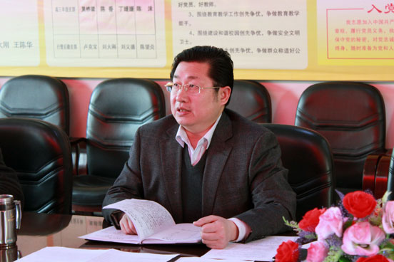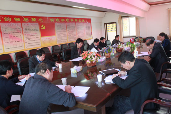 副校长、高三年级蹲点领导毛惠平代表高三年级向领导们汇报了我校三月调考的基本情况以及2014届高三年级的备考工作思路。校长助理、高三年级主任黄红兵与补习学校校长曾志辉分别就备考的具体安排和措施作了汇报,并代表全体高三教师表了决心。校长杨清代表校委会向高三年级提出了工作目标和工作要求。他说,高三年级要进一步“强目标,鼓士气,讲方法,重效率,抓落实”,力争在2014年高考中创造新业绩。