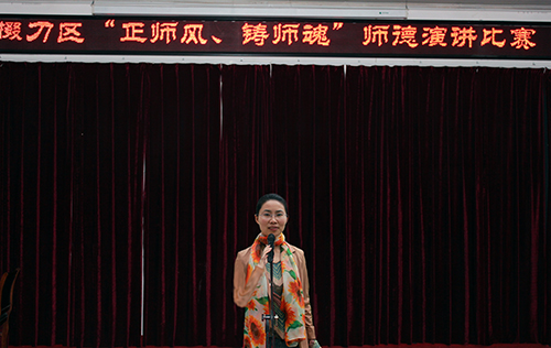4月22日下午,区教育局在掇刀石小学阶梯教室举行了掇刀区“正师风、铸师魂——我身边的师德楷模”演讲比赛。我校选手代翠平、李书香代表学校参加比赛。二位选手以其声情并茂的演讲感染了现场的观众,赢得了评委的青睐,分别取得了一、三等奖的好成绩。一等奖获得者代翠平还将代表掇刀区参加全市决赛。学校慎重地选派选手参加这次比赛,旨在响应掇刀区“师德建设年”活动,加强群众路线教育实践,弘扬师风师德正能量。