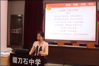 会议在庄严的国歌声中拉开序幕。高三团委书记周青老师带着团员们一起学习了团的知识,回顾了团的历史,明确了团员的权利和义务。通过培训,不但增强了同学们对共青团的认识,而且让同学们更加明确了历史赋予广大团员的使命和任务。接着,高二年级团支部书记鲁俊涵同学带领新团员宣读入团誓词。全体新团员精神饱满,右手握拳,高举过肩,庄严宣誓,正式加入了中国共青团这个光荣的组织。最后,会议在团歌《光荣啊,中国共青团》中完美落幕。