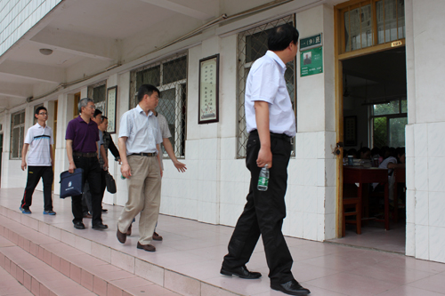 5月26日上午,省教育厅纪检组长、党组成员王安怀等领导莅临我校视察高考考点准备工作。市教育局局长李本全、副局长姜永立,市招考局局长王书虎、副局长陆敬华陪同了视察。视察小组悉心查看了高考监控室、语音播放系统、保密室及拟做考场的教室。他们对学校的高考高点准备工作表示满意,他们希望学校在随后的高考考点工作中,进一步关注细节,落实管理,确保高考办考工作顺利进行。