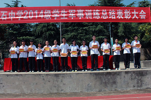 在这次军训中,涌现出许多感人事迹,评出了韩思婕等56名先进个人,高一(1)班等6个优秀班级,男生1号公寓108等18个文明寝室。